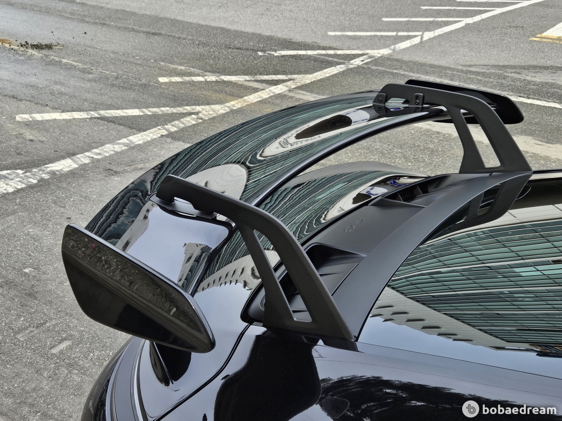 비롯해 탄소섬유 경량 루프 등 GT3 전용 옵션을 고를 수 있다. 탄소섬유 사이드미러 커버, 어두운 컬러로