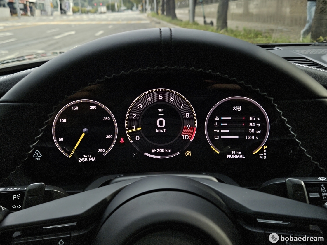 포르쉐 브랜드 홍보대사 요르크 베르크마이스터(Jörg Bergmeister)가 타고 여러 바퀴 도는 동안, 옵션인