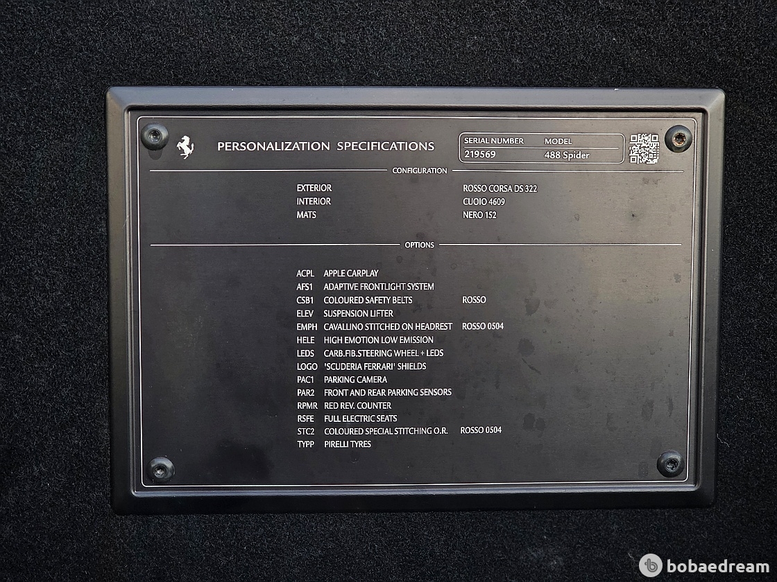 하지만 하드톱 컨버터블이기 때문에 488 GTB보다는 미미하게나마 더 무겁게 설계되었다. 옵션으로 제공되는