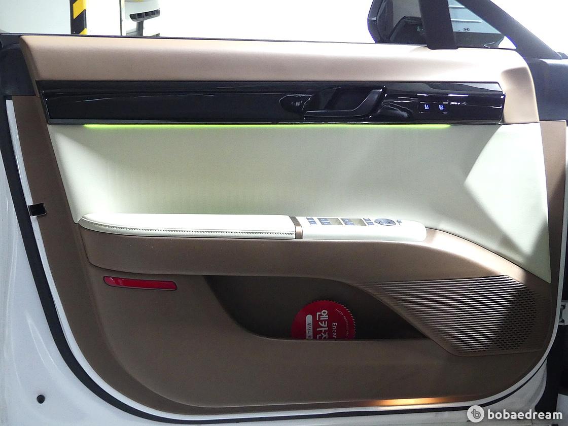 측면부는 2895mm에 달하는 동급 최장 휠베이스에 프레임 없는 도어와 플러시 도어 핸들을 결합한 수평적