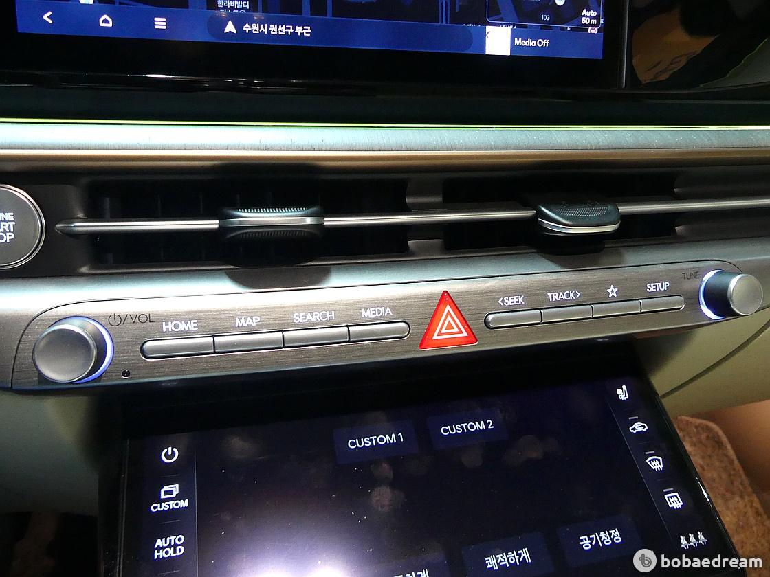 이동했다. 스티어링 휠은 1세대 그랜저의 향수를 담은 원 스포크 스타일이다.